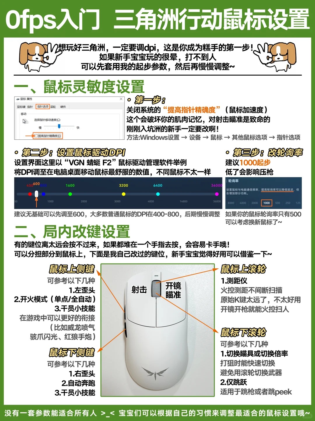 三角洲鼠标这样设置❗你也能成为游戏糕手对于想玩好三角洲行动的宝宝🥺🥺🥺一定得调鼠标设置!.👾首先要了解下DPI、灵敏度和eDPI的关系计算公式:eDPI = DPI × 游戏内灵敏度我们初步以eDP