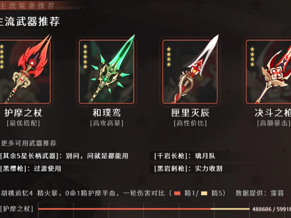 原神胡桃武器排行,萌新选决斗绝对比灭辰好 原神胡桃武器推荐大家佩戴护摩之杖、赤沙之杖以及和璞鸢,这些都是胡桃能够使用的暴击爆伤五星武器,其中护摩之杖是胡桃最适用的武器没有之一,能够和胡桃的被动完美契合
