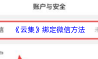 《云集》绑定微信方法 先打开云集APP,点击右下角【我的】,进入个人页面后点击右上角设置图标。接着在设置页面中找到并选择【账号与安全】,再点击【第三方账号绑定】,在其中找到【微