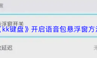 《kk键盘》开启语音包悬浮窗方法 KK键盘开启语音包悬浮窗超简单,几步轻松搞定!打开KK键盘APP,进入“我的”页面后点击右上角设置图标,找到“语音包悬浮窗”选项并点击进入,按照提示开启