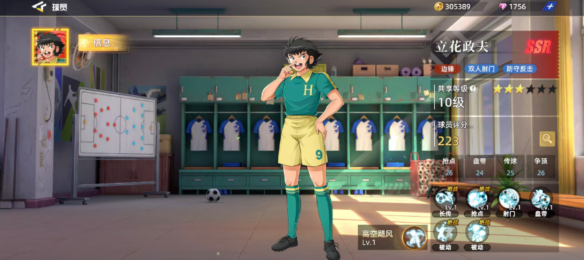 立花政夫在游戏当中也是一个前锋,可以跟边锋的位置进行替换使用的球员,目前在游戏当中他一般情况下其实是跟立花政和夫一起上阵的,因为他们两个人就是其中双人射门当中的主要成员,他在防守反击上面也是可以带来不亚于立花和夫的效果,但是在总体的评分效果上面是比立花和夫多那么2分的,他在整体效果上面可以利用到的技能效果当中,大家可以注意到他在目前使用技能的时候,基础带来的长传效果会比立花和夫更好用一些,那么这里是用他长传的话如果没有收到场抢球属性的影响,他增加的15%长传属性也可以为他带来更多的传球效果,后期使用各种突袭技能进行抢点的时候,这里带来的生效效果当中有一个高空飓风的能力,所以此时进行抢点的话他也会有一些空中优势的动作可以使用。