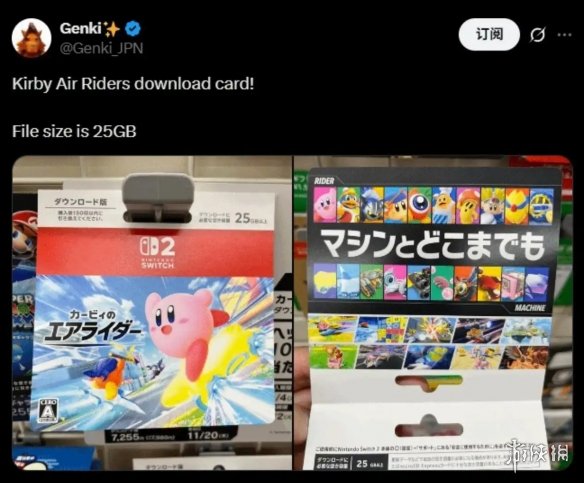 知名任天堂推主Genki_JPN近日在社交平台晒出了Switch 2独占新游《卡比的驭天飞行者》的下载卡实物照片,由此确认该游戏的容量大概在25GB左右,并且预计会在11月20日正式上线。这款游戏的售价定为449港币,它是一款将飞行器与飞行者竞赛元素融合的动作类游戏。