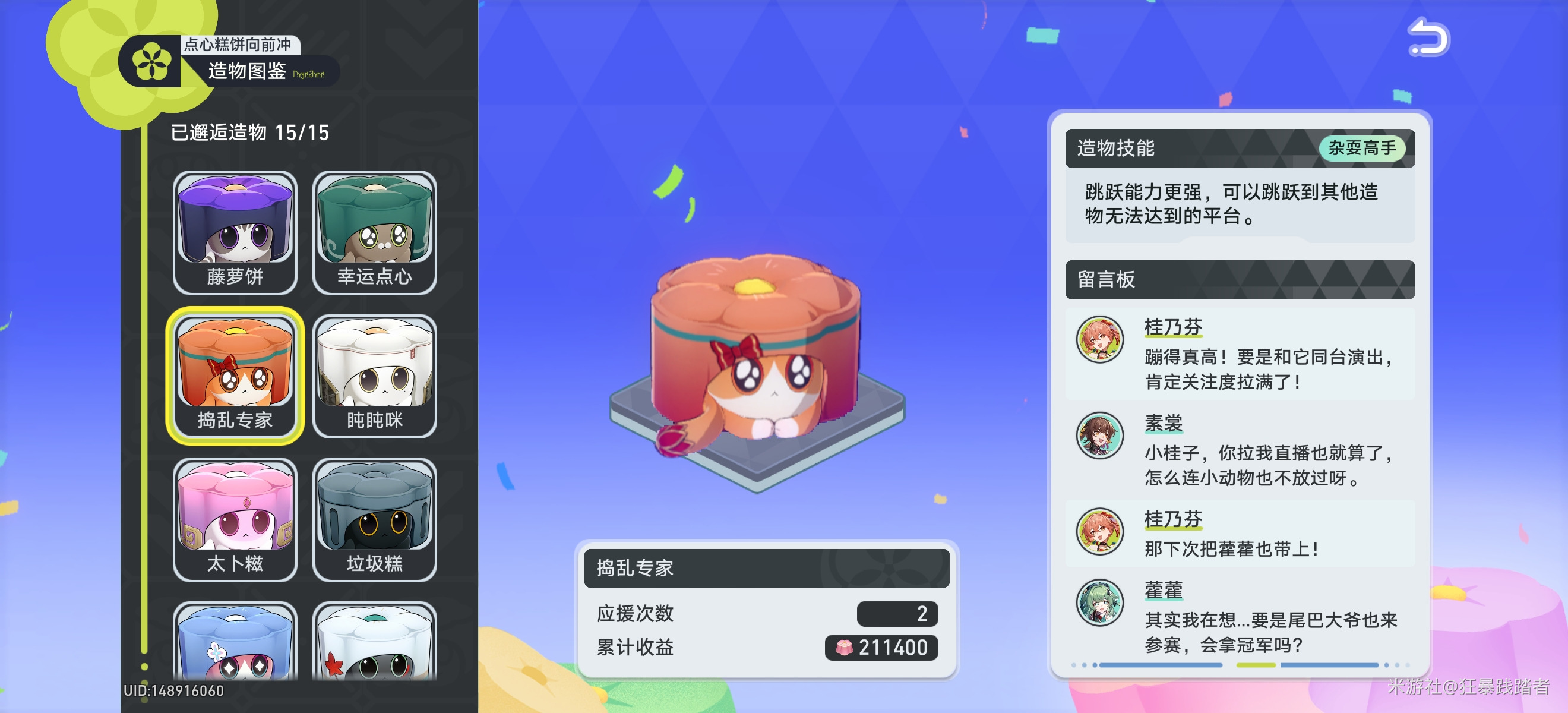 崩坏星穹铁道V3.7联机小游戏糕饼选手一览,大部分朋友都会过完剧情后,投入货币战争的各种轮椅测试中。其实这个版本的联机小游戏《点心糕饼,向前冲》,也非常优秀,拿全奖励快的话大半个小时就搞定了,下面一个一个来点评游戏里的糕饼选手。