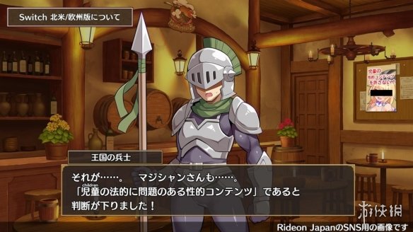 随公告一同发布的还有一组略带调侃的说明插图:画面中游戏里的魔法师角色被士兵告知其造型被认定为“涉及未成年人的问题内容”,魔法师愕然反问:“什么??说我是未成年人??这算什么判断?”——这显然反映了开发团队对此事的态度。插图背景中还贴有“我们绝不容忍涉及未成年人的性内容”的标语。