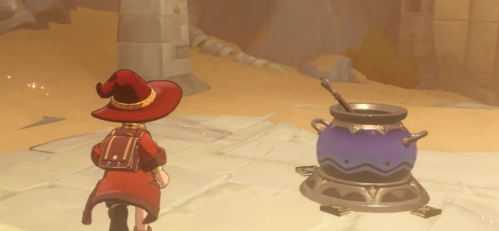 首先,你会来到紫色的大锅那里,这里会告诉你,要想打开后面的门,得先收集三块矿石晶块。接下来,你需要朝左边走,在那儿你会看到一面石墙。这个时候拿出你的精灵,利用精灵的技能把这面石墙给打破,打开一条新路。路过这里后,继续往前走,你会看到一个小星星,记得把它吃掉。吃完之后,回到刚才的石墙那里,把第二面石墙也砸开。砸开后,你会看到一个宝箱,打开它,不要忘了检查一下周围的地方,可能会有些隐藏的东西。把这些东西都捡起来之后,再继续往前走。走到前方的山洞,记得把里面的东西都吃掉,吃完了之后就返回到原来的路。