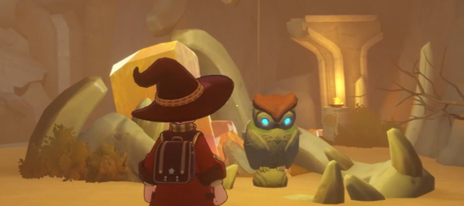 接着,你可以去紫色锅的右边,那儿同样有两面石墙。先打破第一面墙,进入后会看到一只猫头鹰。这个时候,切换到星光魔法攻击它,它会转身,然后你会看到第二只猫头鹰,继续用星光魔法攻击它。等你打完第二只猫头鹰,再转身就会看到第三只猫头鹰,把它也给打倒。这时候,你就能到达最后的位置,找到一个华丽的宝箱,打开宝箱就能拿到第一块矿石晶块。