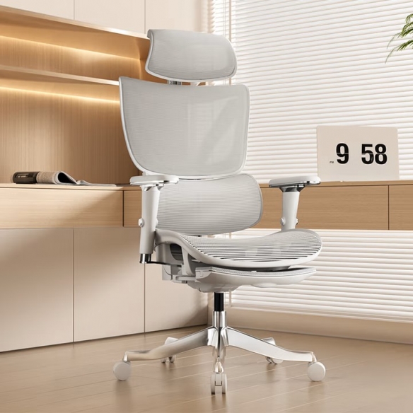 核心优势:135° 后仰+脚踏板,午休秒变单人床,宿舍空间适配性强。3D 悬浮腰靠+4D扶手,5cm座深调节适配小个子。