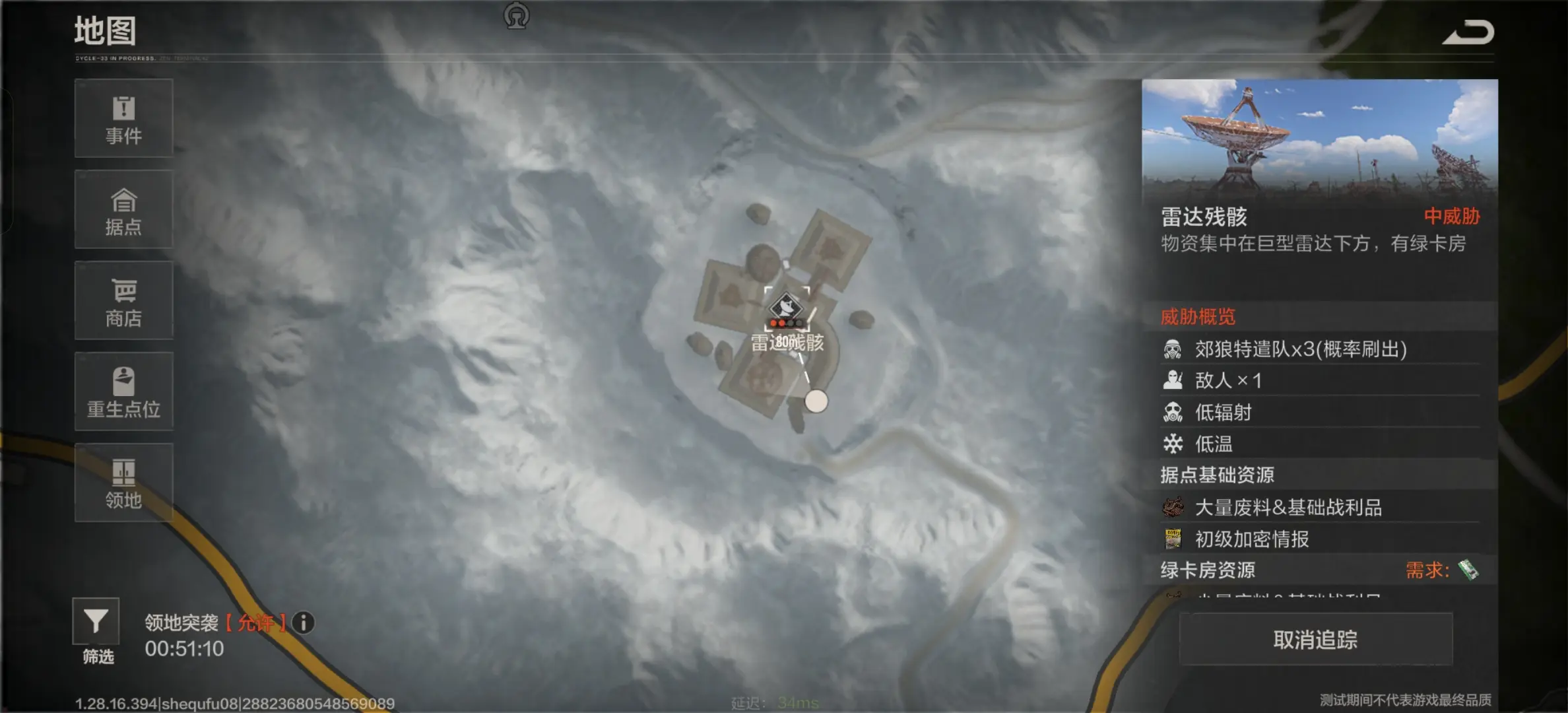 雷达残骸一般刷新在二级低中级辐射遗迹,需要玩家们的辐射数值达到25以上才能进入,如果达不到的话,这个副本是无法进入,接着进入之前是需要绿卡进行刷新的,没有这个绿卡,即便此刻处于刷新的阶段也无法进入。