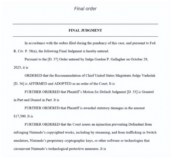 尽管任天堂在赔偿金额上获得支持,但主审法官部分驳回了其附加请求。法官认为,由于凯金使用的是在线模拟服务,要求销毁这些规避设备并不合理。同时,任天堂提出的第三方封禁申请也因未能明确具体对象而未被采纳。这反映出即使在维权胜诉情况下,实际操作层面仍存在一定限制。