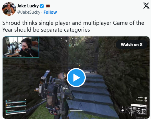 当队友提及2021年获奖的《双人成行》时,Shroud反驳道:“那不算真正的多人游戏”——尽管这款合作游戏仅支持多人游玩,且2023年获奖的《博德之门3》同样支持全程多人模式并当年斩获“最佳多人游戏”。