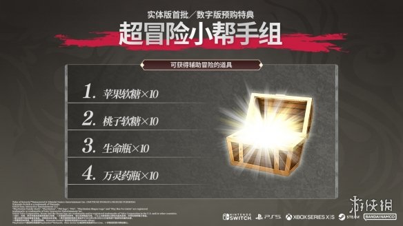 首批购买实体版或预购数字版的玩家将可获得包含软糖及生命瓶等回复道具的特典"超冒险小帮手组"。