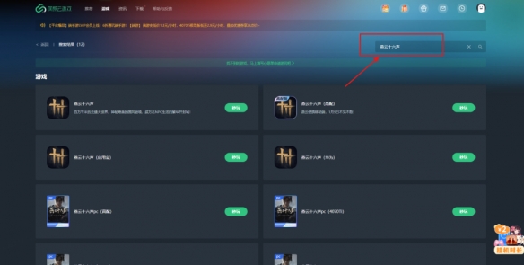 第二步: 点击页面右上角的搜索栏,搜索【燕云十六声】,点击就可以找到点击秒玩啦~