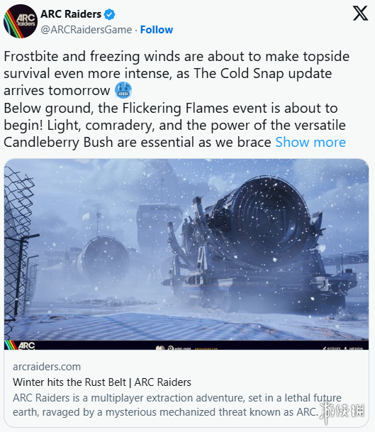 在持续为十二月更新预热后,Embark工作室终于揭晓《ARC Raiders》冬季活动的完整内容:全新地图环境、限时社区事件以及多重免费奖励机会。自10月30日上线以来,凭借扎实的玩法基础与持续更新,该游戏成功保持了稳定的玩家群体。