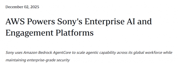 索尼集团首席数字官小寺刚对此表示:“通过与AWS的长期合作,我们现在能够充分利用数据和AI的力量,在粉丝和创作者之间缔造新的纽带。这一举措体现了我们‘用创意和科技的力量感动世界’的目标,是塑造娱乐产业未来的重要一步。”