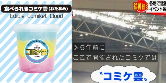 今年正值Comiket迎来50周年,官方宣布将把每年夏季场因馆内人流拥挤、热气与参与者汗水蒸腾而在天花板附近形成的特殊现象——“Comiket云”(コミケ雲),变成“可以吃的Comiket云”。此消息一出,立即在网络引发热议。