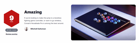 IGN发布评测,为美商海盗船Novablade Pro格斗游戏控制器打出9分高分!