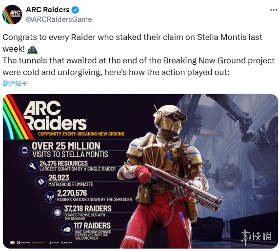 Embark工作室近日公布了《ARC Raiders》"开拓新土"社区活动数据统计,在数百万参与者中,竟有117名玩家因投掷岩石时操作不慎而将自己击倒。