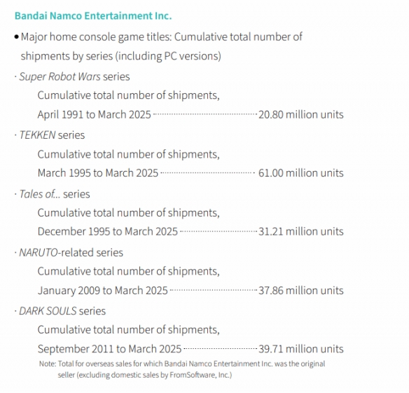 近日,万代南梦宫发布了2025综合报告,更新了旗下游戏IP的总销量数据,包括《铁拳》、《传说》、《黑暗之魂》等知名系列,一起来看下吧。