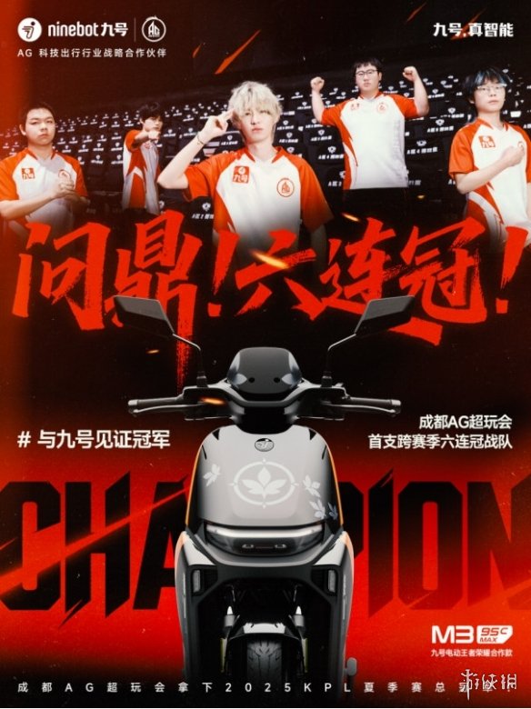 对于刚刚在2025年KPL夏季赛总决赛实现六连冠的成都AG超玩会而言,这并非终点,而是新征程的起点。同样,对于九号公司而言,新的目标蓝图也已展开,未来,九号将继续坚持以年轻用户为中心,致力于提供更多符合时代潮流的智能出行选择。同时,九号也将把与电竞的合作推向更深层次,即将启动的2025九号杯王者争霸赛,便是品牌与粉丝、玩家再次深度汇聚的舞台。从电竞赛场上的巅峰荣耀到现实道路上的智能出行,九号与成都AG超玩会正向着更加广阔的未来全速前进。