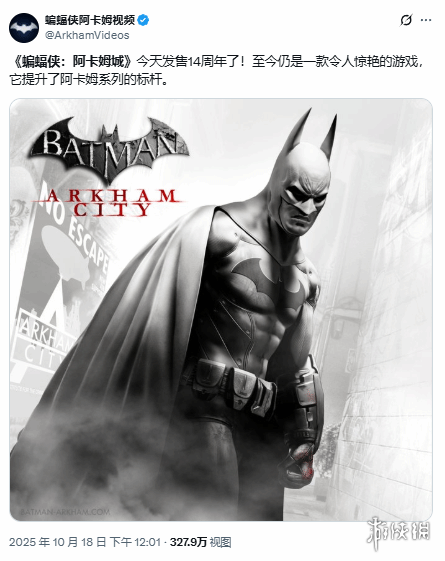 在推特上,众多粉丝纷纷发文,表达对这款游戏的热爱与纪念。他们直言,即便游戏已发售十四年,在《蝙蝠侠:阿卡姆》三部曲中,它依然是最帅气、最精彩的一部。
