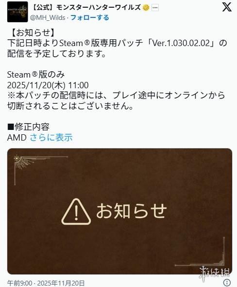 2025年11月20日,Steam版《怪物猎人:荒野》发布了最新更新(Ver.1.030.02.02)。此次更新修复了此前频繁报告的AMD Radeon环境下“启动时故障”问题,但游戏中的运行表现仍需持续关注,而最新驱动仍然存在此类问题。