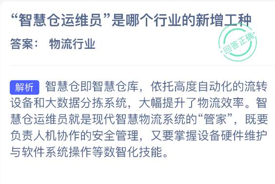 “智慧仓运维员”是哪个行业的新增工种?【蚂蚁新村每日一题】2025年12月3日题目已发布!坚持答题,积累木兰币,即可加速小镇建设。答对本题,立即可享“产速+3/时”的加速奖励!今天正确答案是【物流行业】。智慧仓运维员是中国人力资源和社会保障部于2025年新增的职业工种,隶属于物流服务师职业类别。