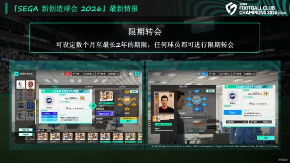 在《创造球会TV#02》直播中,除了公布2026年1月22日正式上线,官方也揭露多项新系统与便利性优化,让球会经营更具策略性与流畅度。例如众多玩家非常期待的「限期转会」系统,而「球会大厅」则提供培育成长要素的功能,透过提升全队训练等级、降低疲劳度,全面强化球队竞争力。