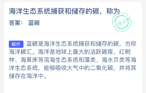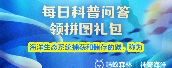 海洋生态系统捕获和储存的碳,称为?【神奇海洋】12月21日新题目已开答!正确答案现已公布,点击领取拼图,一起为修复海洋生态贡献力量!今日正确答案是:【蓝碳】。海洋生态系统捕获和储存的碳,称为蓝碳。