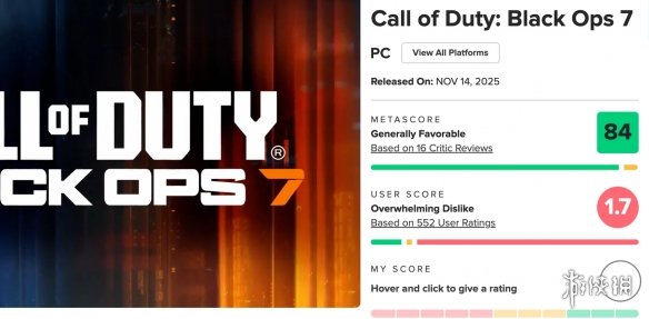 《使命召唤:黑色行动7》遭遇艰难开局,发售首周末在Metacritic收获"压倒性差评",成为该系列有史以来用户评分最低的作品。尽管媒体为PC版打出84分均分(主机版因评价数量不足未出分),但数百名用户仅给出1.7分(截至发稿),85%用户给出负面评价,使本作成为系列最不受欢迎的续作。