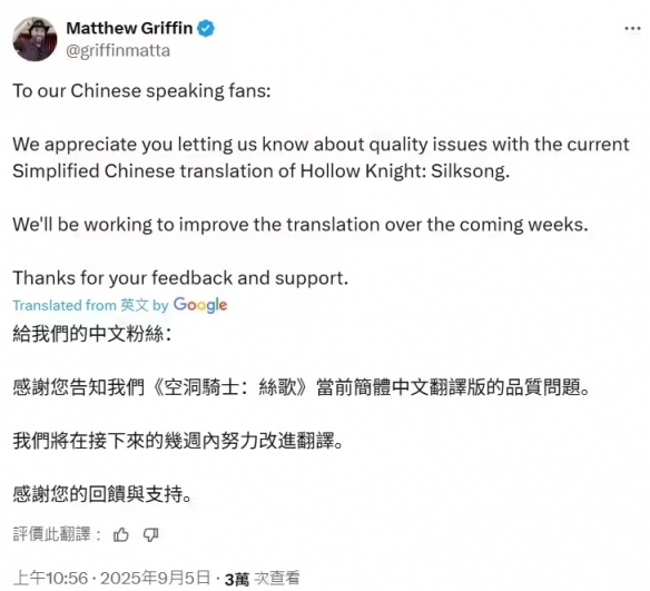 开发团队已确认收到这些反馈,并承诺将在未来几周内持续优化中文翻译品质,为玩家带来更好的游戏体验。