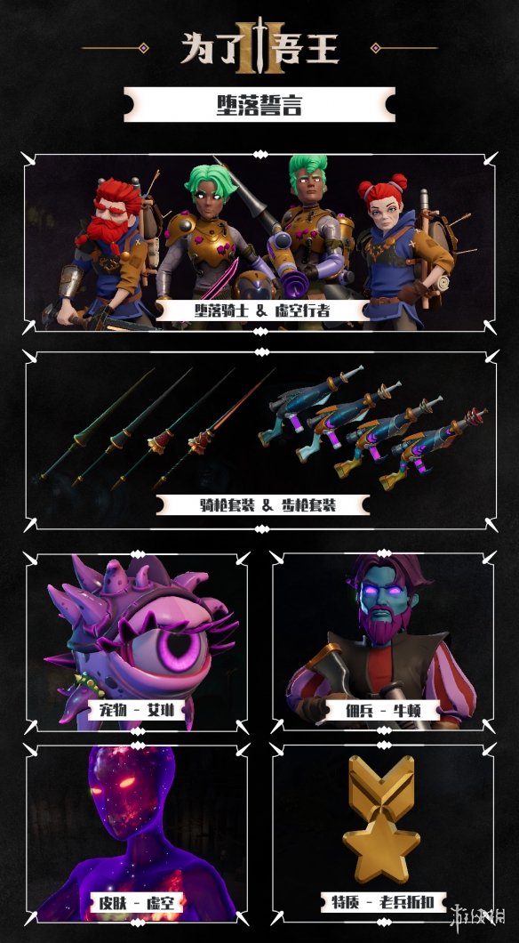 全新角色包《堕落誓言》重磅发布!内含「虚空行者」 与「堕落骑士」 两位新英雄、还有神秘新伙伴“大眼萌妹”新特质等额外惊喜,丰富你的战术组合!
