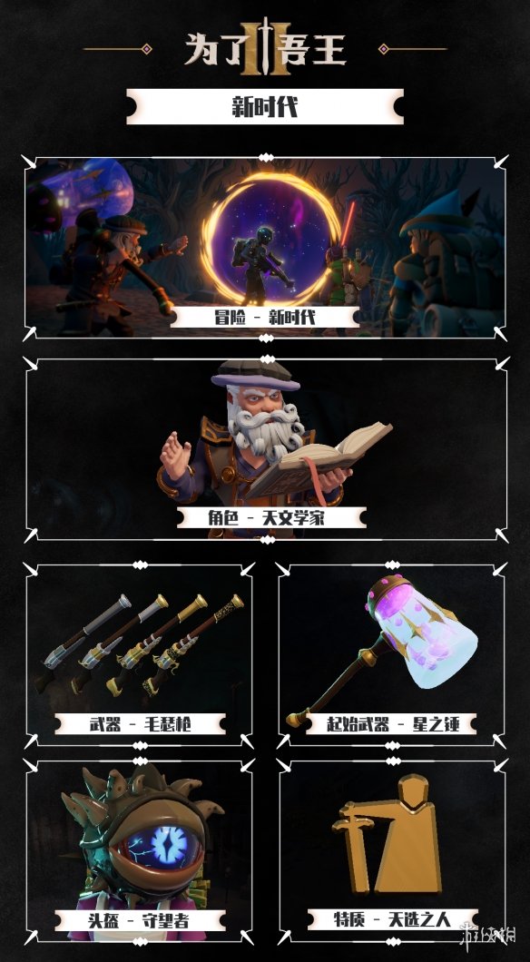 经典角色「天文学家」 荣耀回归!掌控星辰之力,技能“黑洞”可一击制敌。所有玩家更新后可在学识商店免费解锁,完成章节还可获得专属“星之锤”外观。