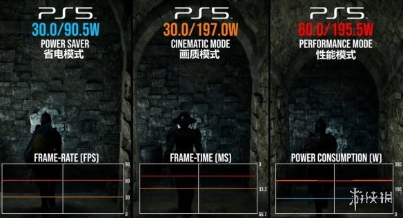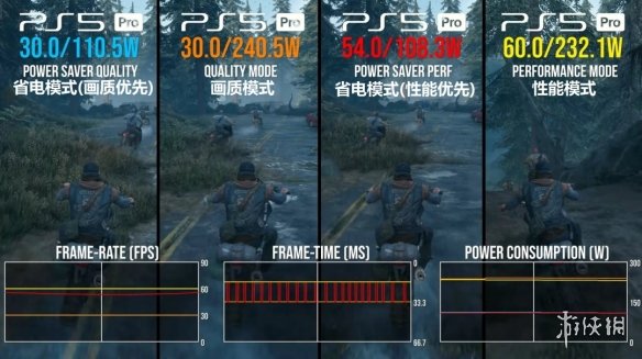 《往日不再》则提供了更精细的配置选项:玩家仍可在性能模式(目标60FPS)与画质模式(目标30FPS)间自由选择。启用省电模式后,游戏会启动动态分辨率调节机制,在复杂场景中可能出现帧率波动(最低至45FPS)及画面像素化现象,其系统功耗也从240W峰值降至约110W。