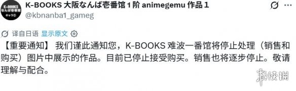 日本二手周边连锁店K-BOOKS近日发布公告,宣布将停止销售并停止收购多部热门作品的相关商品。该公告由K-BOOKS大阪难波分店通过官方社交媒体账号发出,共列出十三部动画与游戏作品,其相关周边将不再于该店内销售。