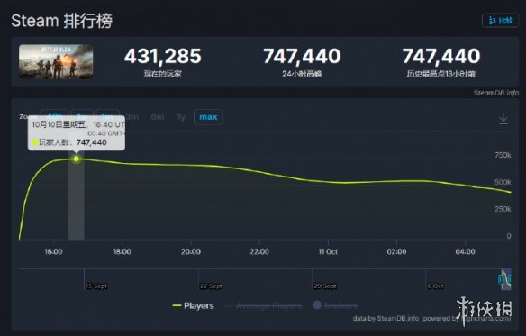 另据Steam平台统计数据显示,《战地6》发售后玩家同时在线峰值达到747440人,已超越《Apex英雄》此前保持的624473人纪录,成为EA在Steam平台历史上同时在线人数最高的游戏作品。