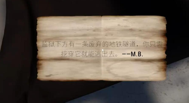 在游戏的背景故事当中,玩家由于经济诈骗,所以被警察逮捕关在了监狱当中。来到这里的第一天,你便收到了朋友写给你的小纸条。他在信上写着,你被关押的牢房下面有一条巨大的通道,只需要你将牢房下面的板砖全部挖开,你就可以成功的逃脱监狱。看到这个消息的你,马上就要开始准备起了自己的越狱计划。
