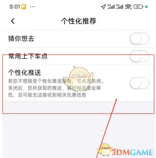 3、在跳转的新界面中点击“个性化推送”右侧的按钮,当按钮颜色变成灰色,则表示关闭该功能成功