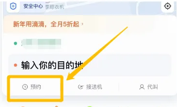 1、首先打开滴滴出行App,点击顶部的“预约”功能。