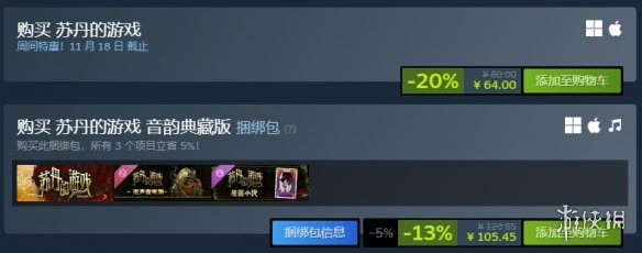 今天《苏丹的游戏》发布重大更新,包含大量全新故事线,总计字数超过20万字,让游戏的总文本量接近200W字。此外游戏还开启了-20%的史低折扣,原价80元,现价64元,折扣活动将从11月11日持续至11月18日。