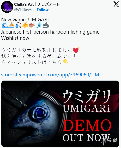 日本游戏开发商Chilla's Art宣布,将在Steam平台推出全新自研游戏《Umigari》(ウミガリ),并计划支持简体中文等多语言版本。自即日起,游戏试玩版demo已在Steam开放,供玩家抢先体验。