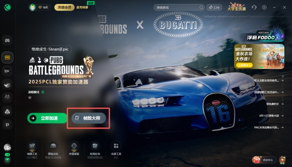 并且迅游加速器内置的游戏工具【帧数大师】,可以针对《PUBG绝地求生》进行系统深度调优,有效释放硬件潜能,显著提升游戏帧数。