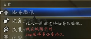 怪异雕像: 让人一看就觉得怪异的雕像。放在城镇中时,Exp获得量会变为0。