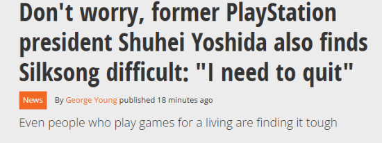 在接受GameSpark的采访时,前PlayStation总裁吉田修平透露,自己最近正游玩《空洞骑士:丝之歌》,而且切实感受到这款游戏难度颇高。当被问及有没有值得推荐的独立游戏时,这位向来以热爱独立游戏而闻名的行业资深前辈面带笑意地回答:“值得推荐的实在太多了。”