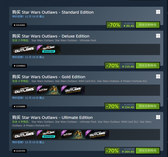 今日,育碧3A开放世界游戏《星球大战:亡命之徒(Star Wars Outlaws)》在Steam平台迎来新史低促销,标准版原价298元,现3折仅需89.4元,优惠活动截止到12月19日。