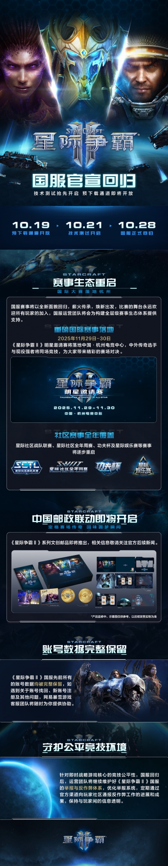· 重磅国际赛事落地:2025年11月29日-30日,《星际争霸Ⅱ》明星邀请赛将落地中国·杭州电竞中心,中外传奇选手与现役强者将同场竞技,为大家带来精彩的赛场对决。