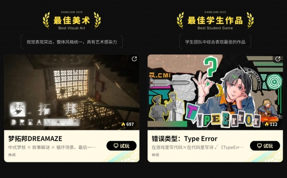 通过1个多月面向全体玩家超100万次的试玩评选,2025聚光灯21天GameJam的获奖名单现已公布,恭喜学生团队「图书馆三楼工作室」的创意编程解谜作品《错误类型:Type Error》脱颖而出,获选「最佳游戏」大奖。