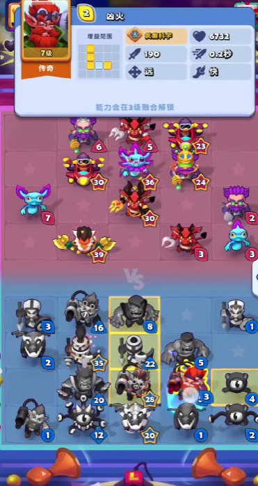为了更大程度的增强,飞龙的灼烧战斗效果,建议玩家在队列内,也携带凶火这一个传奇型的英雄角色,它属于疯癫科学流派,增益范围为L型,虽然基础攻击倍率和血量数值都不高,但他的攻击间隔极短,可以协助飞龙完成dot伤害的叠加。