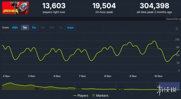 发售仅两个月,《无主之地4》在Steam平台的玩家流失情况已严峻超越前作。根据Steam Charts数据,截至目前,该作24小时峰值玩家数跌破2万,较首发时的30.4万峰值流失率达93%,较《无主之地2》《无主之地3》同期82%的流失率高出逾十个百分点。