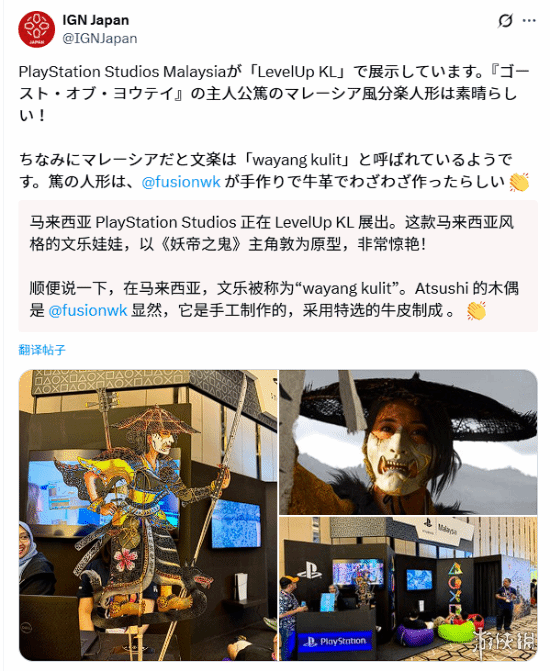据IGN日本消息,PlayStation马来西亚分部近日在LevelUp KL展会(马来西亚年度大型游戏盛会)上,展示了《羊蹄山之魂(Ghost of Yōtei)》中女主角“笃”的一款马来西亚风格“文乐”人偶。该游戏于10月2日正式发售。