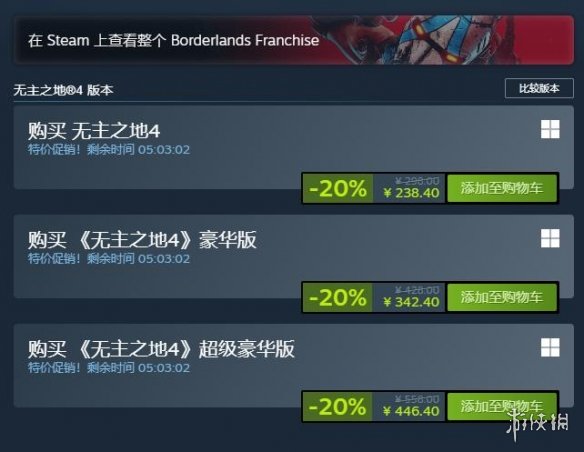 《无主之地4(Borderlands 4)》、《无主之地4》豪华版、《无主之地4》超豪华版也享受-20%优惠。